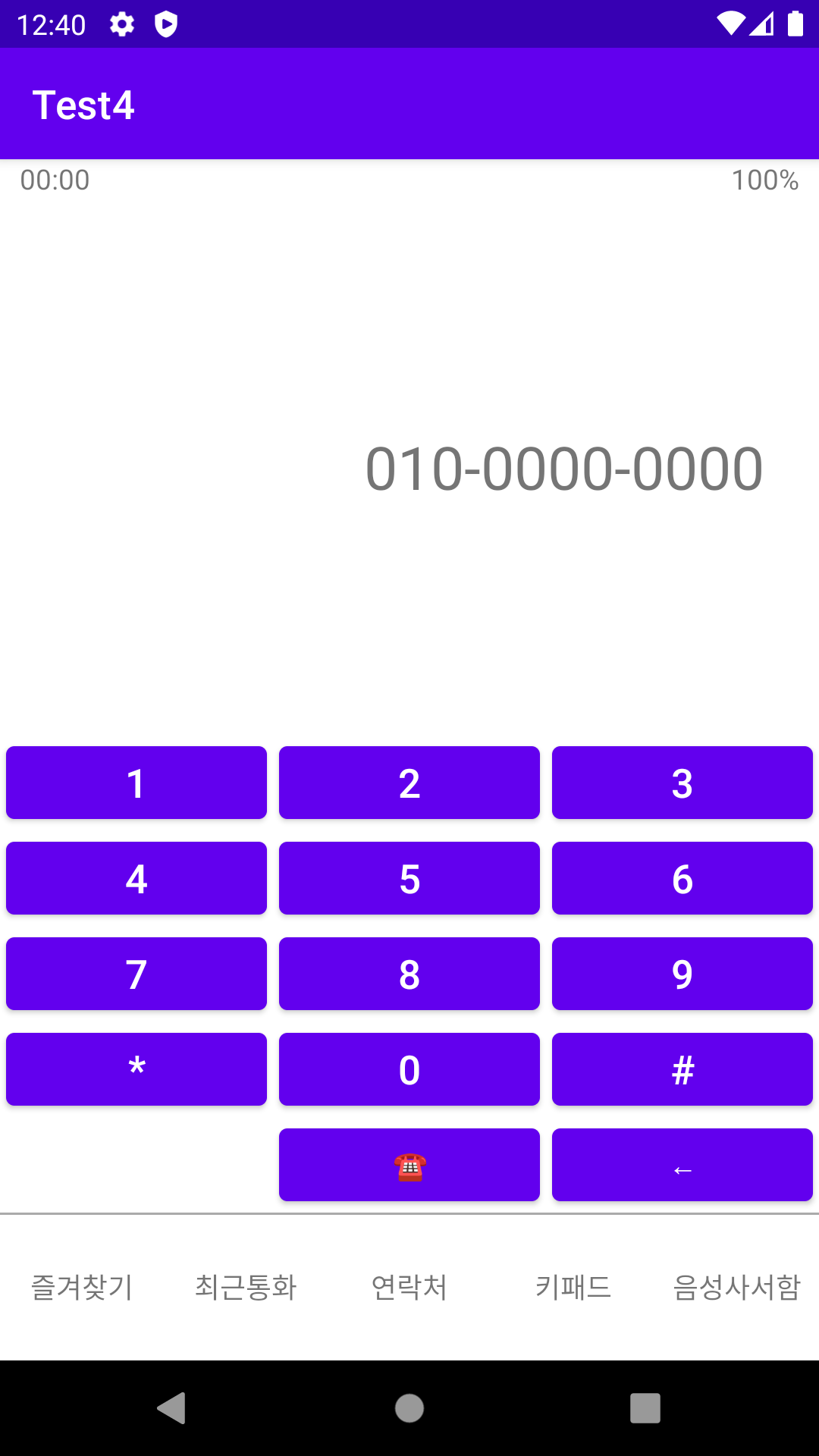 전에 배웠던 내용인 RelativeLayout, LinearLayout의 특성을 포함해서 핸드폰의 통화 키패드 화면을 만들어보았다.